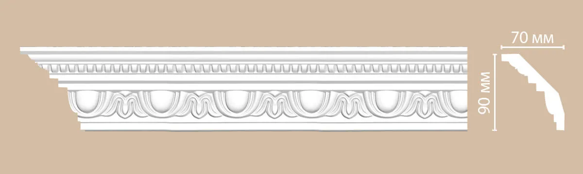 Потолочный карниз из полиуретана 95769 Decomaster. Карнизы используются для придания потолку завершенного вида, для скрытия швов между стеной и потолком добавляя изысканности и стиля в интерьер помещения. Полиуретановые карнизы устойчивы к воздействию влаги, в отличие от некоторых других материалов, что делает их подходящими для использования в ванных комнатах или кухнях.