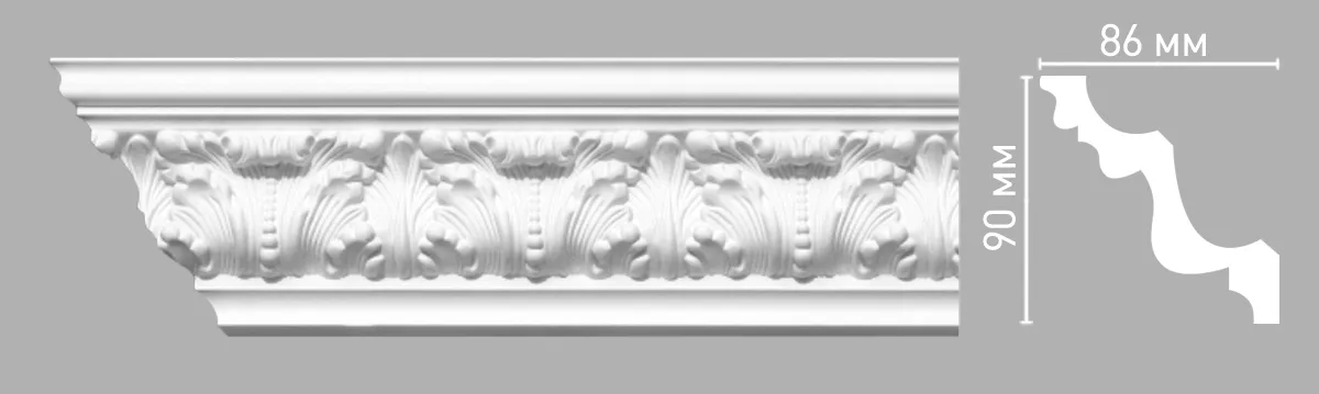 Потолочный карниз из полиуретана 95027 Decomaster. Карнизы используются для придания потолку завершенного вида, для скрытия швов между стеной и потолком добавляя изысканности и стиля в интерьер помещения. Полиуретановые карнизы устойчивы к воздействию влаги, в отличие от некоторых других материалов, что делает их подходящими для использования в ванных комнатах или кухнях.