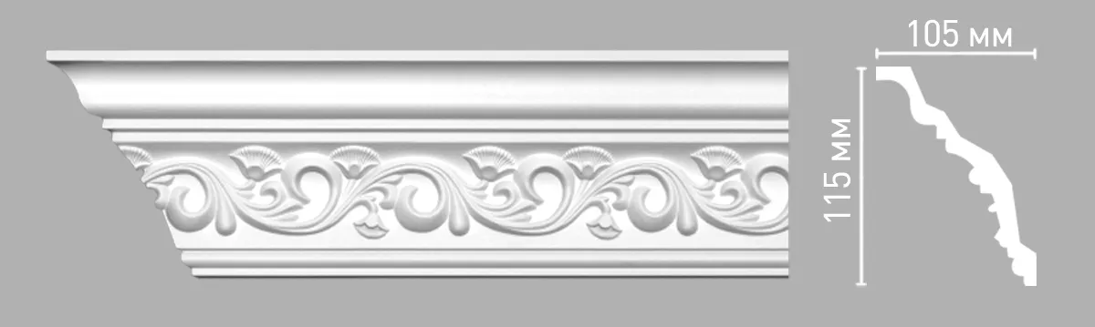Потолочный карниз из полиуретана 95831 Decomaster. Карнизы используются для придания потолку завершенного вида, для скрытия швов между стеной и потолком добавляя изысканности и стиля в интерьер помещения. Полиуретановые карнизы устойчивы к воздействию влаги, в отличие от некоторых других материалов, что делает их подходящими для использования в ванных комнатах или кухнях.