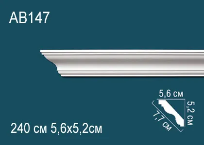 Карниз AB 147 с гладким профилем из полиуретана компании Перфект. Материал высокой прочности, гибкости, водонепроницаемого, стойкого к перепадам температур и воздействию света, что позволяет монтировать не только в сухих, но и влажных помещениях. Для монтажа карнизов рекомендуется использование монтажного и стыковочного клея во избежание расхождения швов. Перед покраской рекомендуем прогрунтовать изделия для лучшего окрашивания лакокрасочными материалами не содержащие растворителей.