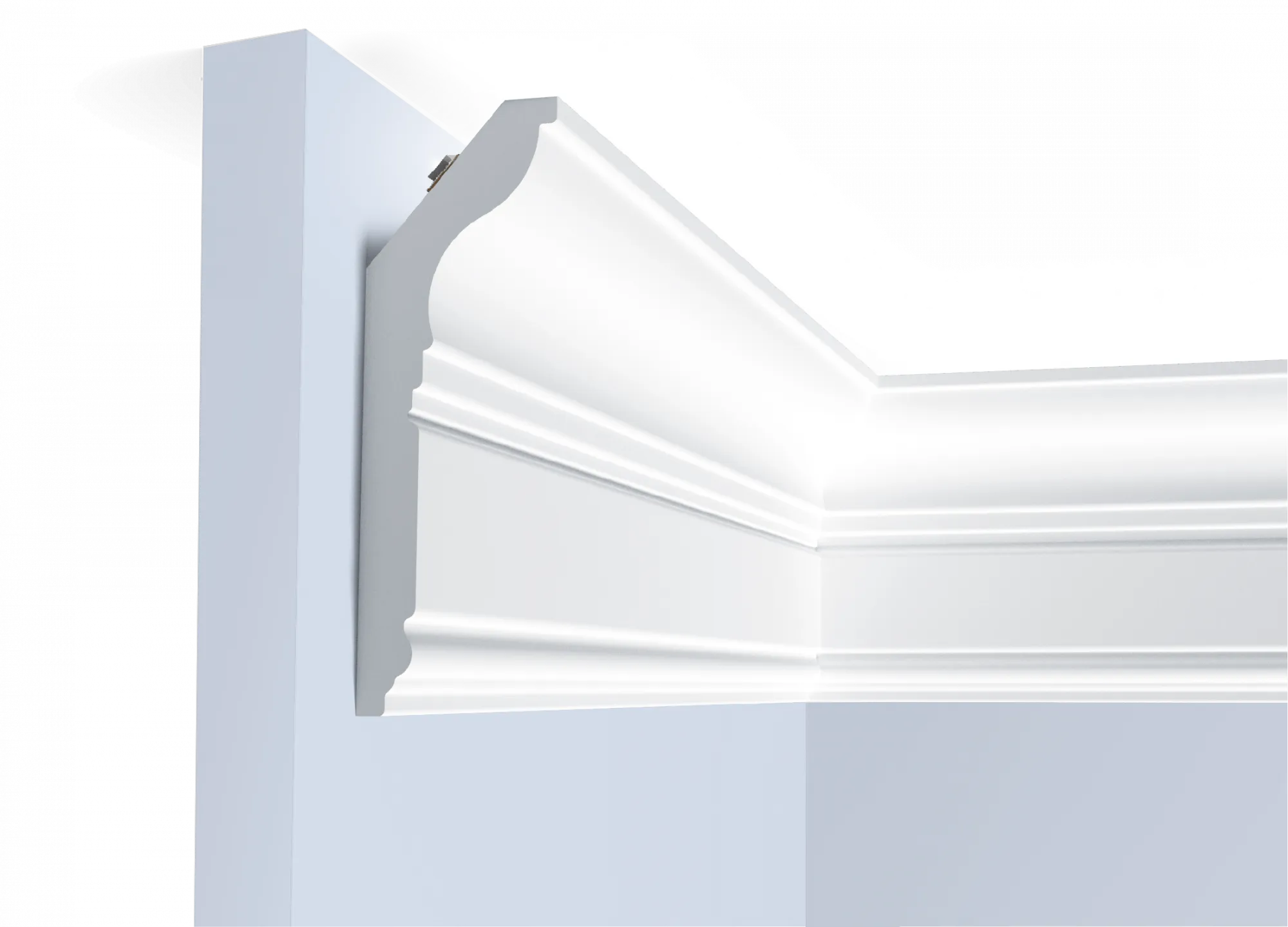 Потолочный карниз L1902 из фитополимера производителя HIWOOD. Карнизы устанавливаются на пересечении стены и потолка и служат как функциональным, так и эстетическим элементом в интерьере, придают комнате завершенный и изысканный вид.