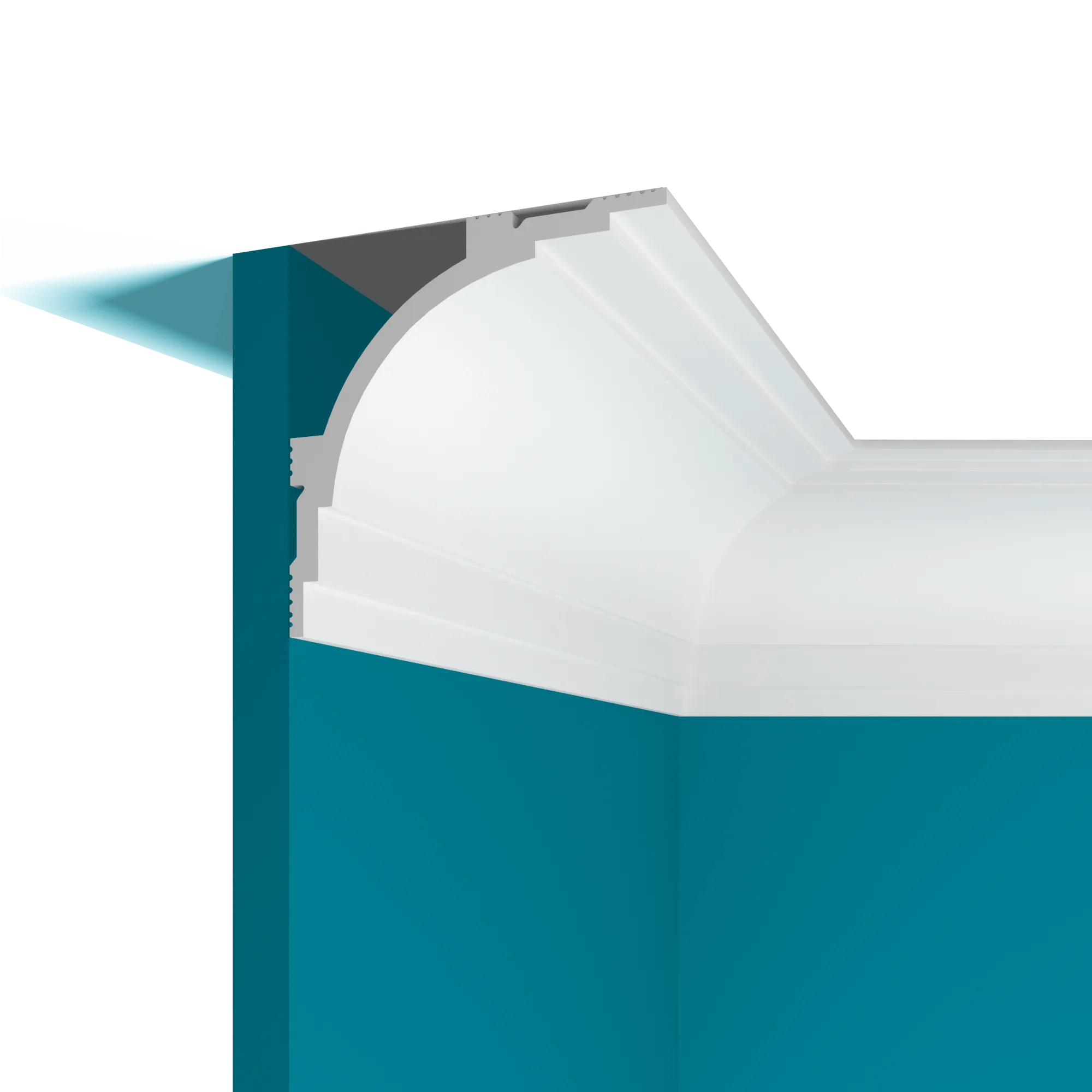 Потолочный карниз Р99 из коллекции перфект plus. Материал дюрополимер он же ( экополимер, композит, фитополимер). Дюрополимер обладает высокой твердостью, прочности не поглощает влагу, что позволяет использование в ванных комнатах и саун. Перед покрытием лакокрасочными материалами не содержащие растворители - рекомендовано про грунтовать. Рекомендуется использовать стыковочный клей для соединительных стыков.
