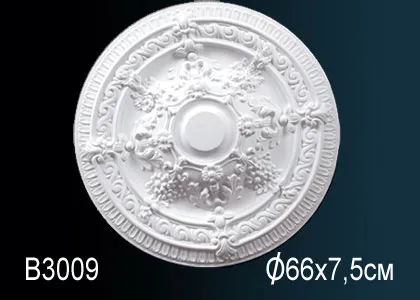 Розетка B 3009 из полиуретана производителя Перфект будет красивым дополнением к люстре в любом интерьере вашего дома. Материал полиуретана устойчив к воздействию влаги, что делает наши розетки подходящими для использования в различных условиях, включая ванные комнаты и кухни, установка потолочных розеток из полиуретана довольно проста и не требует особых навыков или специальных инструментов, легко покрасить в любой цвет, что позволяет адаптировать их под конкретный дизайн интерьера.