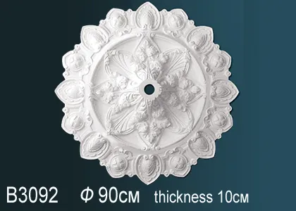 Потолочная розетка B 3092 из полиуретана производителя Перфект будет красивым дополнением к люстре в любом интерьере вашего дома. Материал полиуретана устойчив к воздействию влаги, что делает наши розетки подходящими для использования в различных условиях, включая ванные комнаты и кухни, установка потолочных розеток из полиуретана довольно проста и не требует особых навыков или специальных инструментов, легко покрасить в любой цвет, что позволяет адаптировать их под конкретный дизайн интерьера.