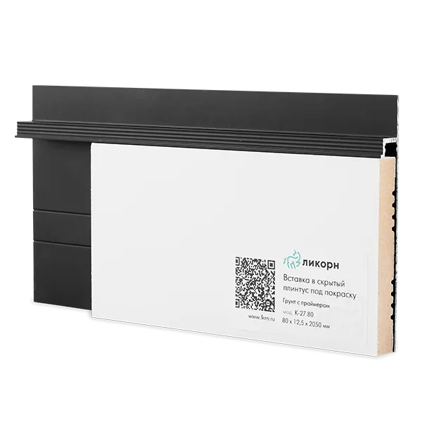 Вставка К-27.80 Ликорн в скрытый плинтус из МДФ для последующей покраски.