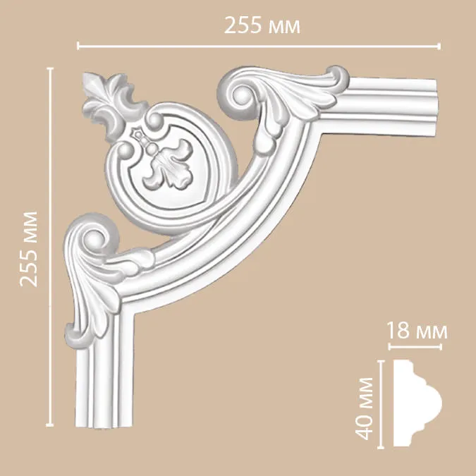 Угловой элемент 97010-5 из полиуретана Decomaster выполненные в форме угла и являющейся составной частью композиции с молдингом 97010 С помощью угловых элементов и молдингов можно создавать различные декоративные рамки как на стенах, так и на потолках. Материал отличается высокой прочностью и долговечностью. Все изделия про грунтованы и готовы под окраску в любой цвет красками, не содержащими растворители. При монтаже рекомендуется использование монтажного и обязательно стыковочного клея во избежания расхождения швов.