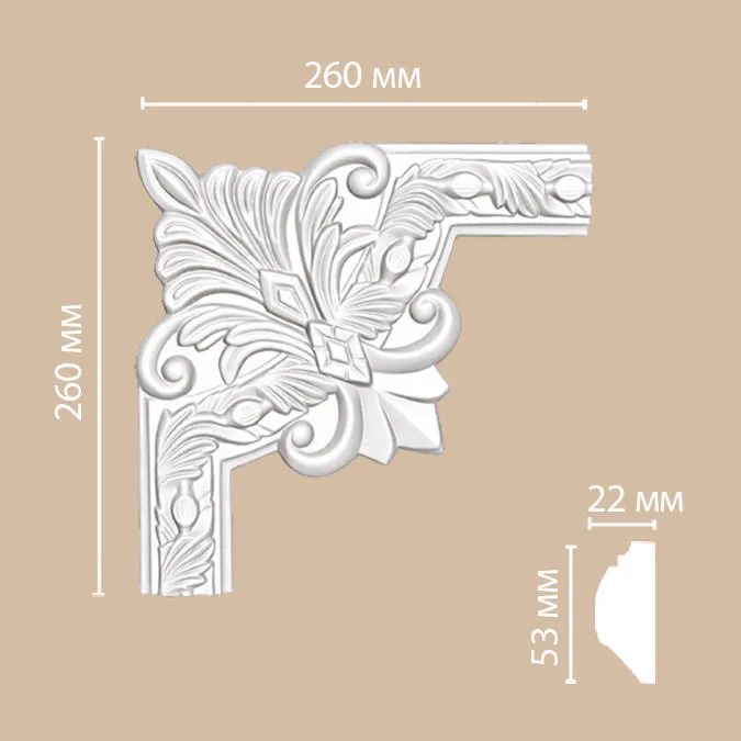 Угловой элемент 98102-3 из полиуретана Decomaster выполненные в форме угла и являющейся составной частью композиции с молдингом 98102 С помощью угловых элементов и молдингов можно создавать различные декоративные рамки как на стенах, так и на потолках. Материал отличается высокой прочностью и долговечностью. Все изделия про грунтованы и готовы под окраску в любой цвет красками, не содержащими растворители. При монтаже рекомендуется использование монтажного и обязательно стыковочного клея во избежания расхождения швов.