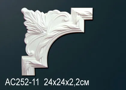 Угловые элементы представляют собой особые детали лепного декора, которые применяются в сочетании с молдингами для создания аккуратных и ровных стыков под прямым углом.
