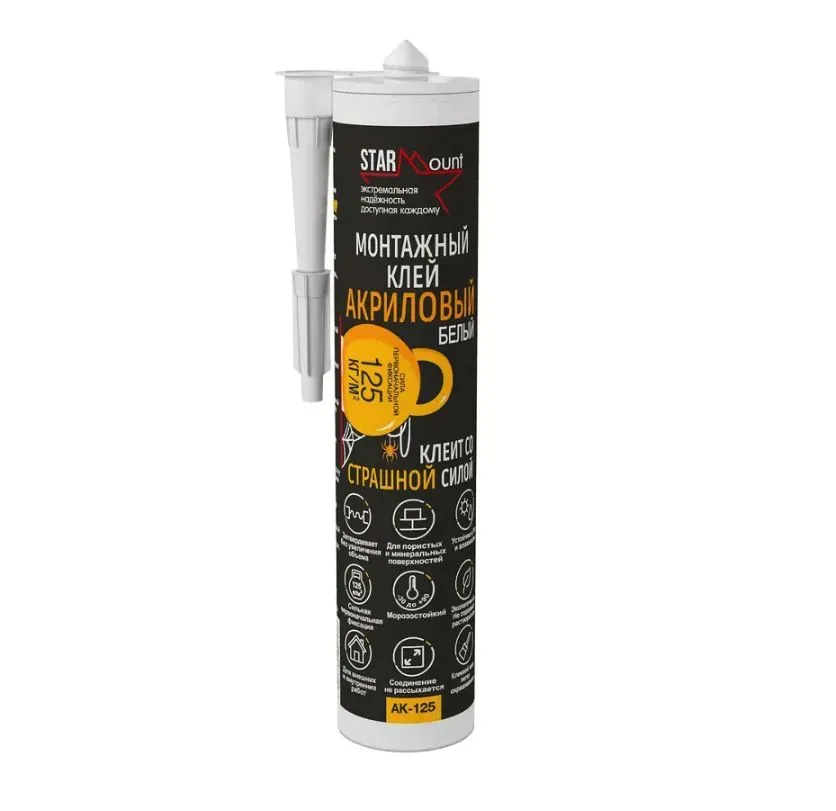 Клей на акриловой основе StarMount AK-125 от компании Decor-Dizayn предназначен для монтажа и приклеивания потолочных и напольных плинтусов, а также молдингов, выполненных из полистирола, полиуретана и дюрополимера. Он также подходит для работы с другими строительными материалами, такими как гипс, гипсокартон, кирпич, бетон, камень, металл, дерево, керамика, ПВХ, МДФ, OSB и ДСП. Этот клей выделяется высокими показателями в своем классе и обладает значительными прочностными и эксплуатационными характеристиками, что делает его идеальным для выполнения сложных задач.